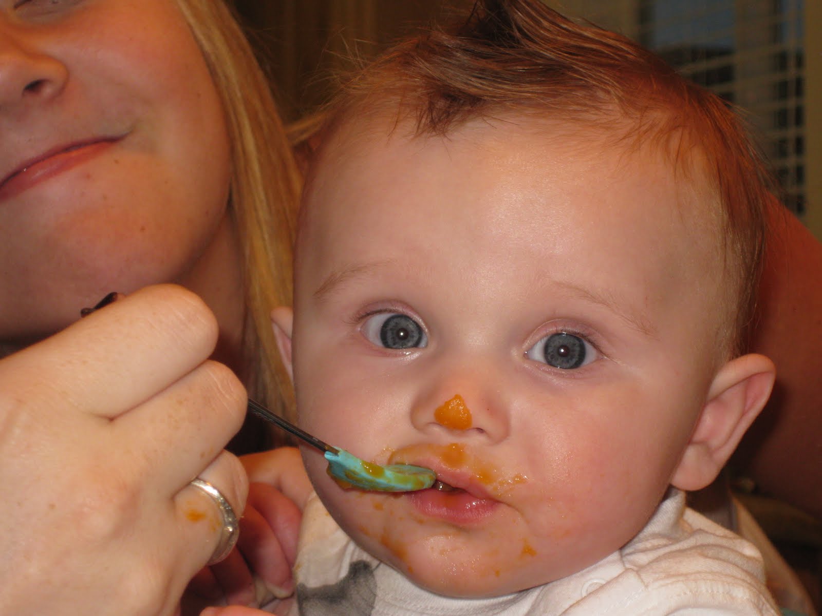 So we've started feeding dax solid foods now and hes loving it these are just a few of the funny pictures I took.